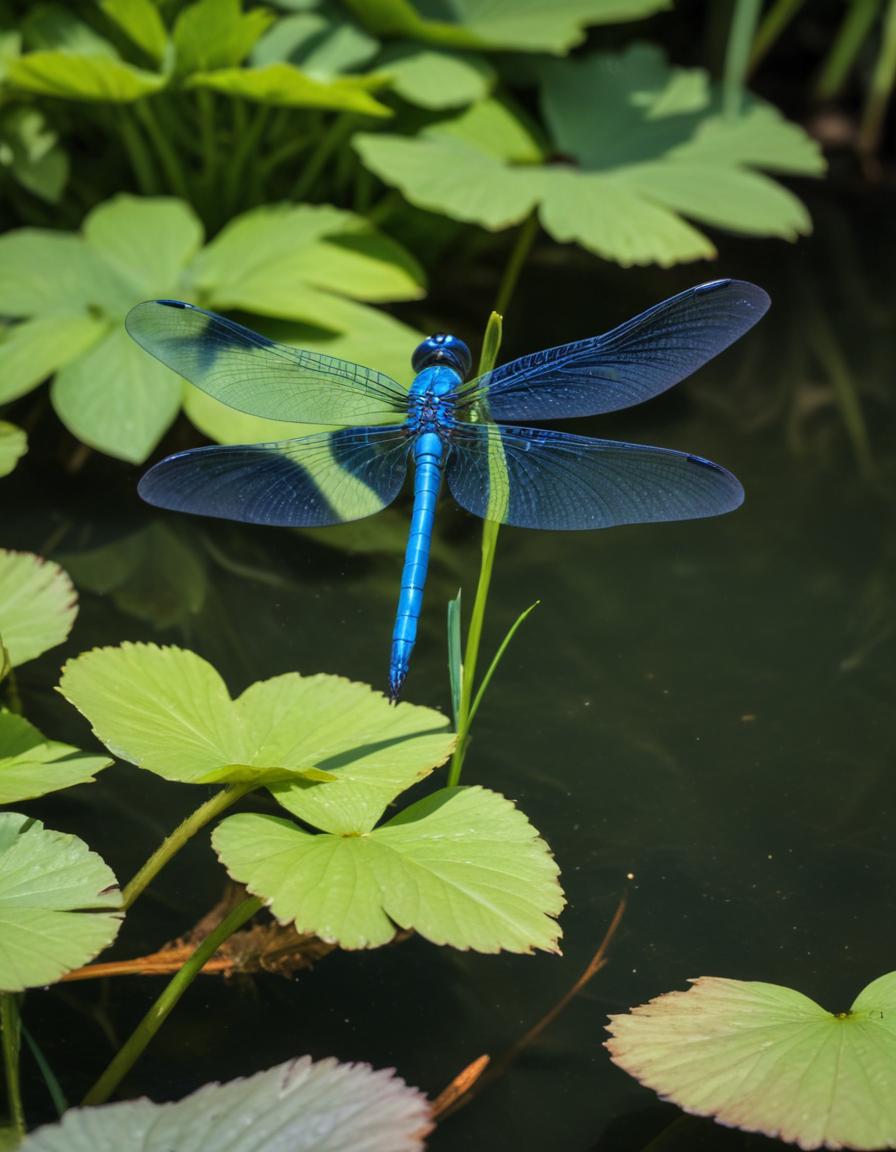 animal, aquatic, blue, close-up, dragonfly, ecosystem, environment, fauna, green, insect, leaves, macro, nature, outdoor, plant, pond, summer, water, wildlife, wings