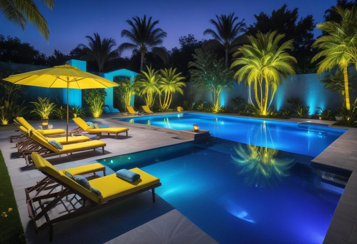 Nighttime poolside relaxation