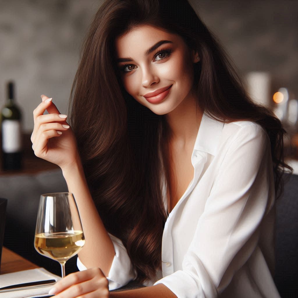 Woman enjoying wine at a restaurant
