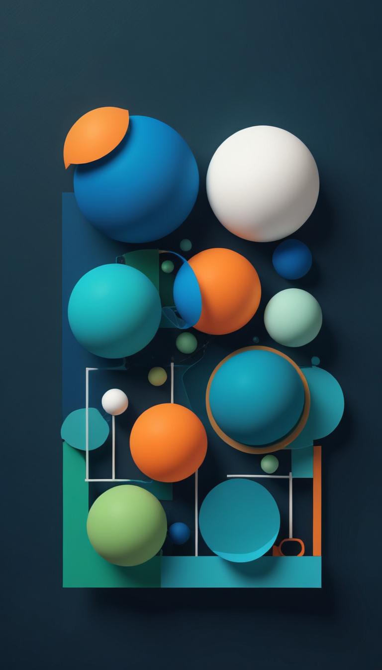 abstract, art, background, blue, circle, colors, design, digital, geometric, graphic, green, illustration, line, minimal, modern, orange, pattern, simple, spheres, white