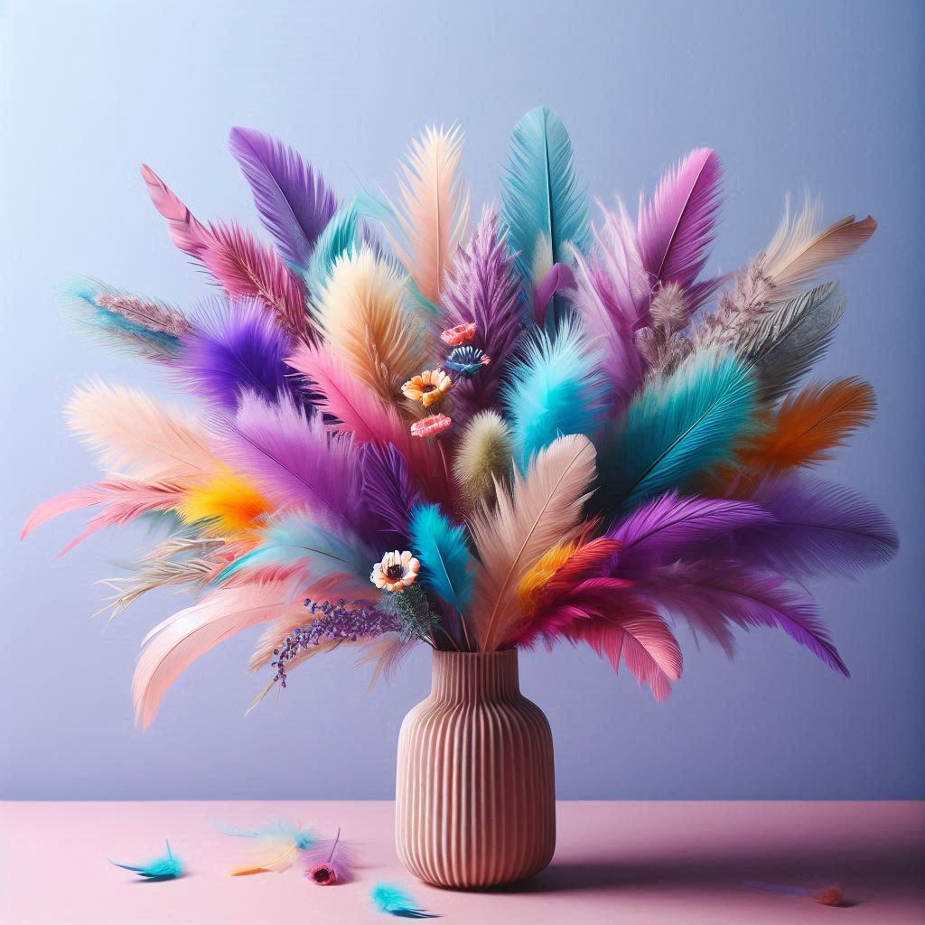 Colorful feather bouquet in vase