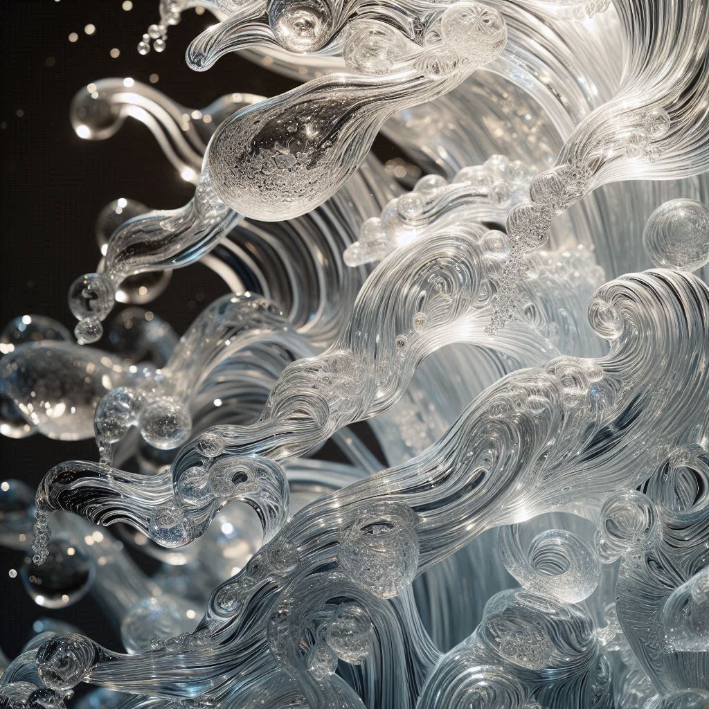 abstract, art, bubbles, close-up, contemporary, design, detail, flowing, glass, light, lines, liquid, macro, modern, organic, reflection, sculpture, texture, transparent, water