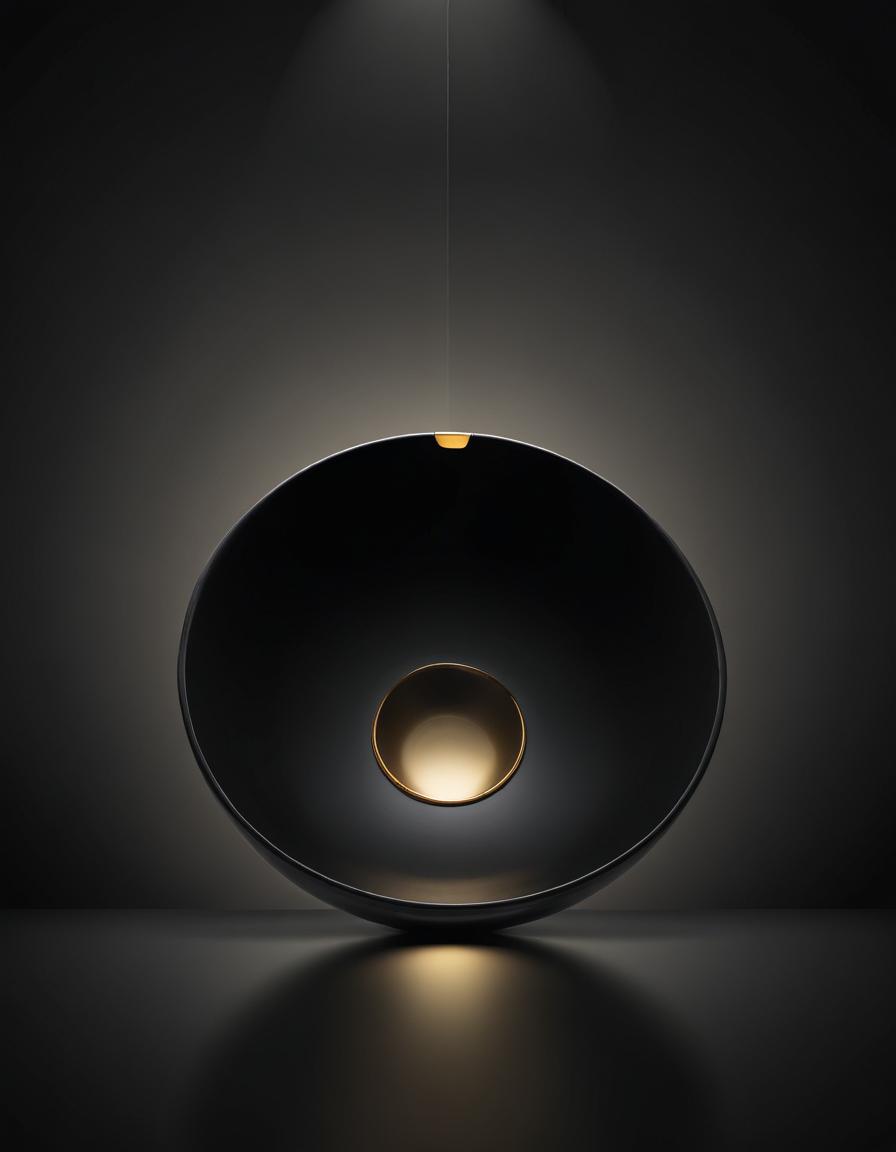 abstract, ambience, black, bowl, ceiling, dark, design, glow, hanging, illumination, interior, lamp, light, minimalist, modern, reflection, room, shadow, simple, warm