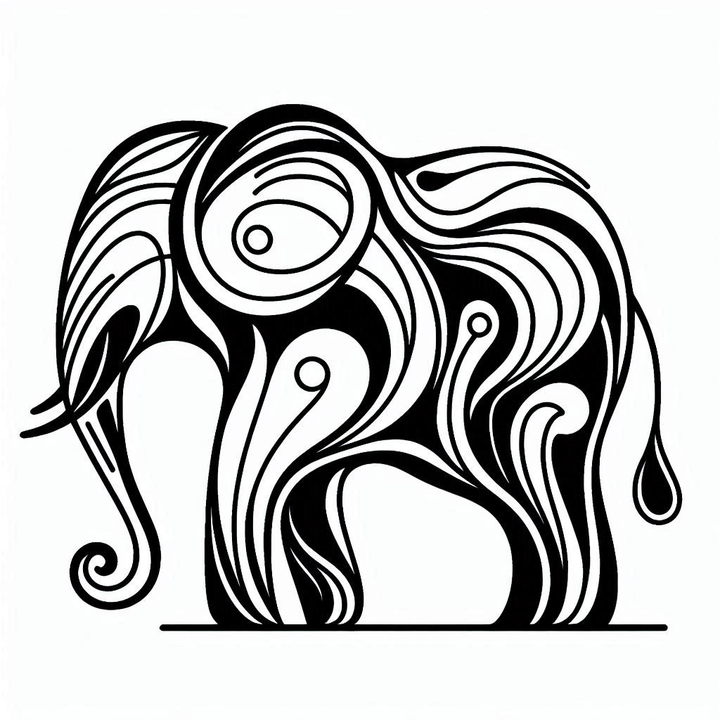 abstract, animal, art, creature, curve, design, drawing, elephant, graphic, icon, illustration, line, mammal, nature, pattern, sketch, stylized, swirl, vector, wildlife