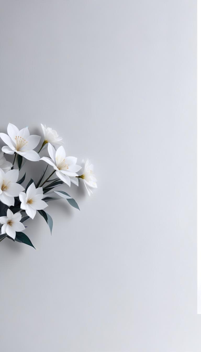 arrangement, background, beauty, blossom, bouquet, corner, elegant, floral, flowers, gray, greenery, leaf, minimalist, nature, petals, plant, simple, stem, wall, white