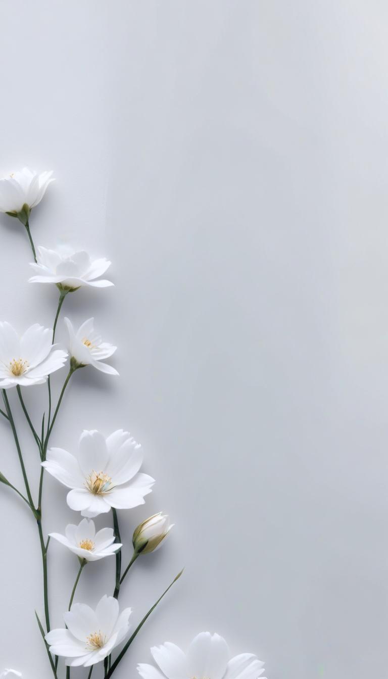 background, beauty, bloom, blossom, border, delicate, elegance, floral, flowers, fresh, grey, minimal, natural, nature, plant, pure, simple, soft, stem, white