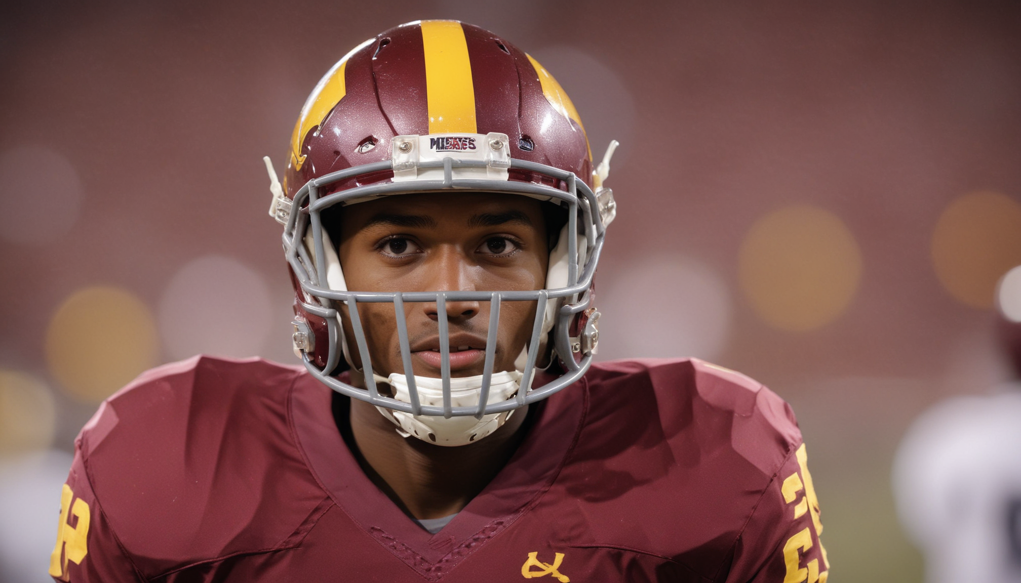 Football player in helmet on field