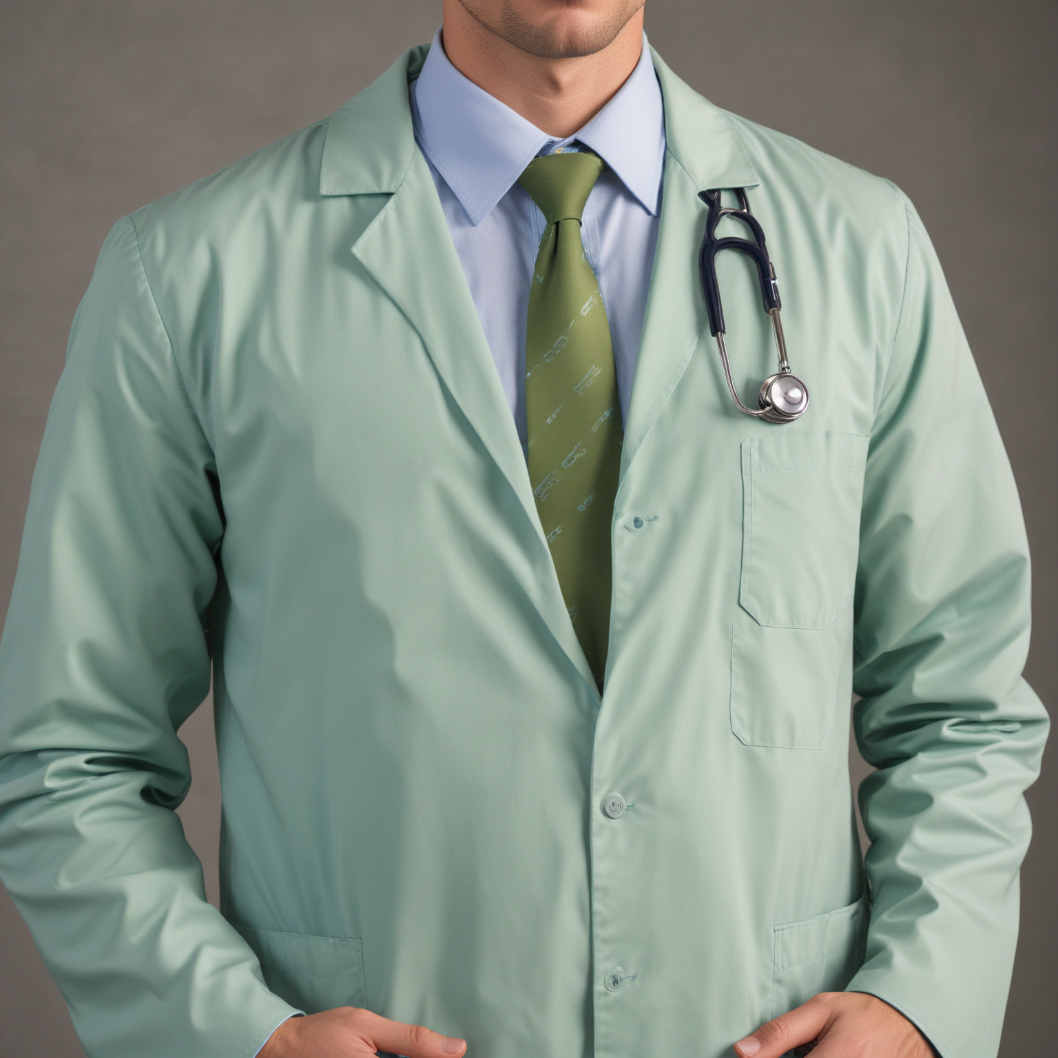 A doctor wearing a green lab coat and a stethoscope stands with his hands in his pockets.