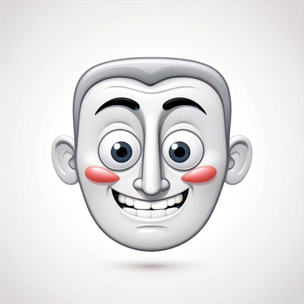 art, big, blush, cartoon, character, cheeks, digital, emoji, emoticon, eyes, face, gray, happy, illustration, large, man, red, smiling, teeth, white