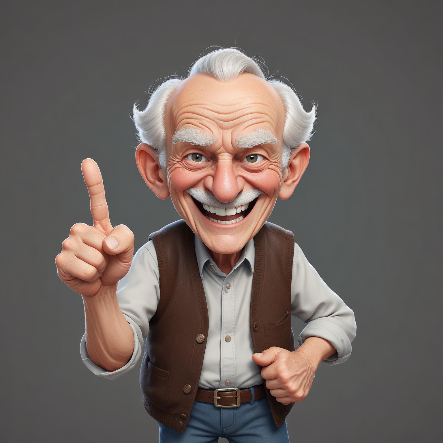 background, cartoon, cheerful, elderly, finger, gesture, grey, hair, hand, happy, illustration, man, mustache, optimism, point, pointing, positive, render, smiling, white