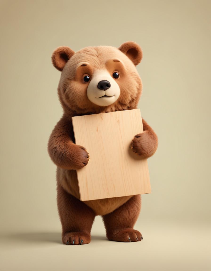 adorable, animal, background, bear, beige, blank, brown, cartoon, cub, cute, furry, holding, illustration, isolated, paws, portrait, sign, simple, standing, wood