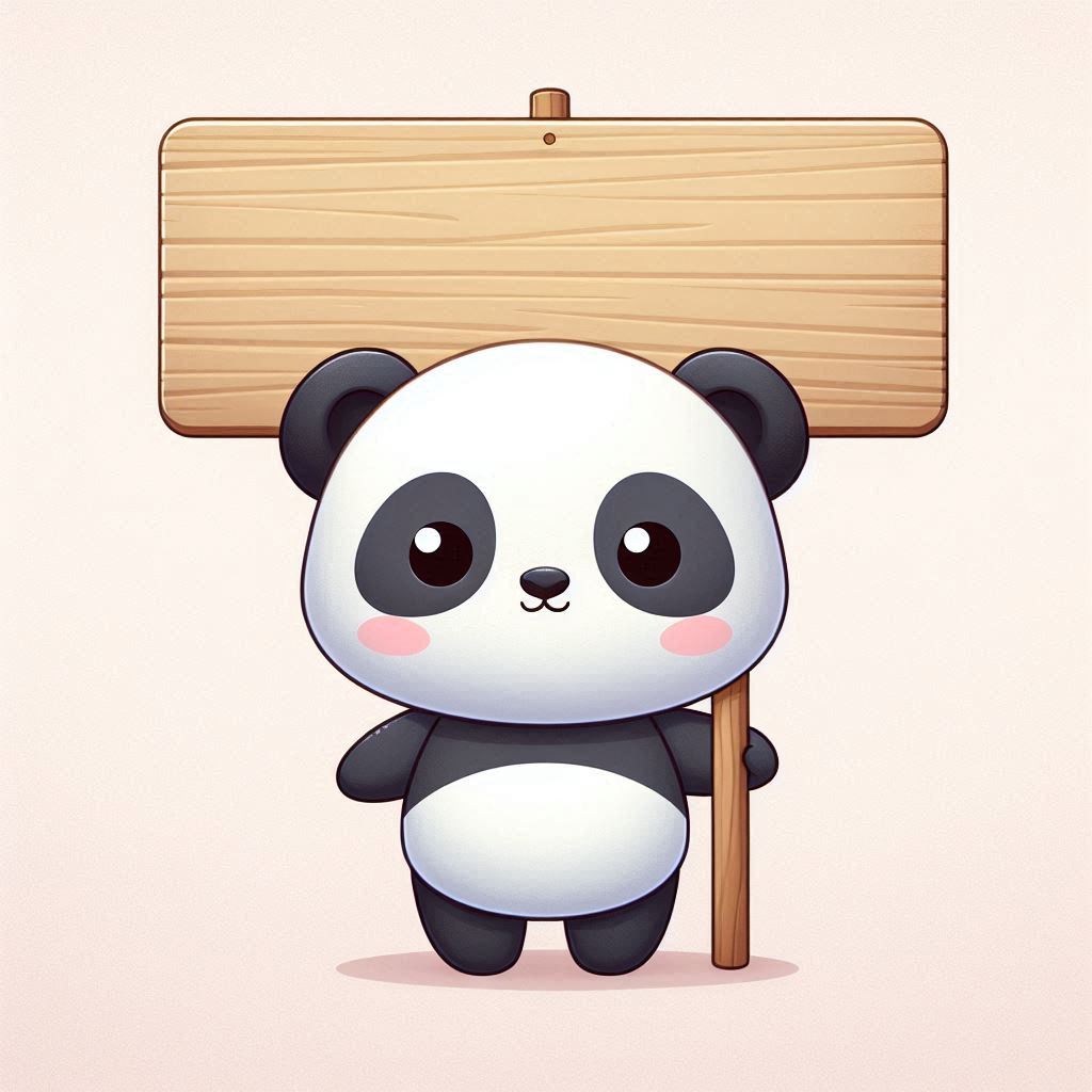 adorable, animal, blank, cartoon, character, clipart, cute, design, digital, emoji, graphic, hold, icon, illustration, mascot, panda, sign, standing, symbol, wooden