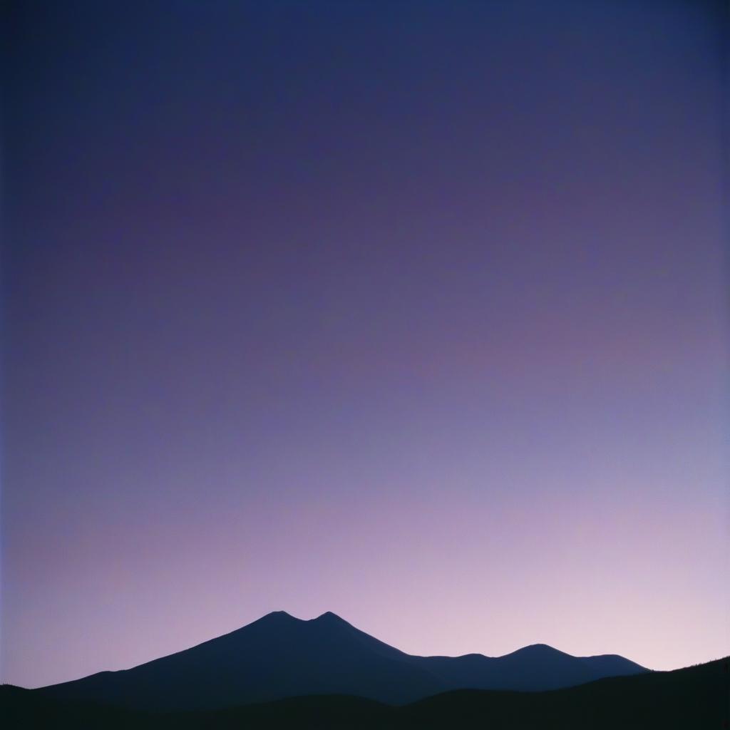 A dark mountain range silhouetted against a purple twilight sky.