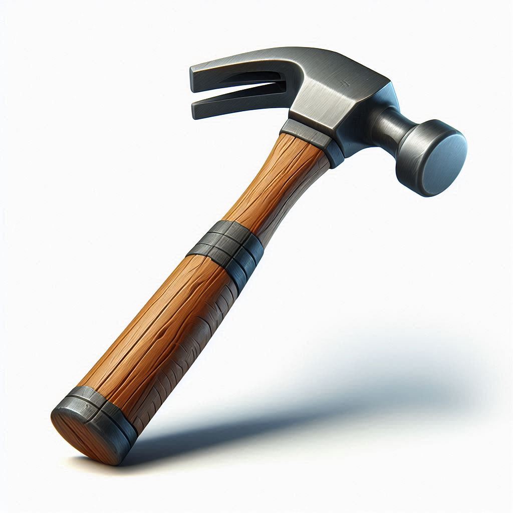 A classic claw hammer with a wooden handle, isolated on a white background.