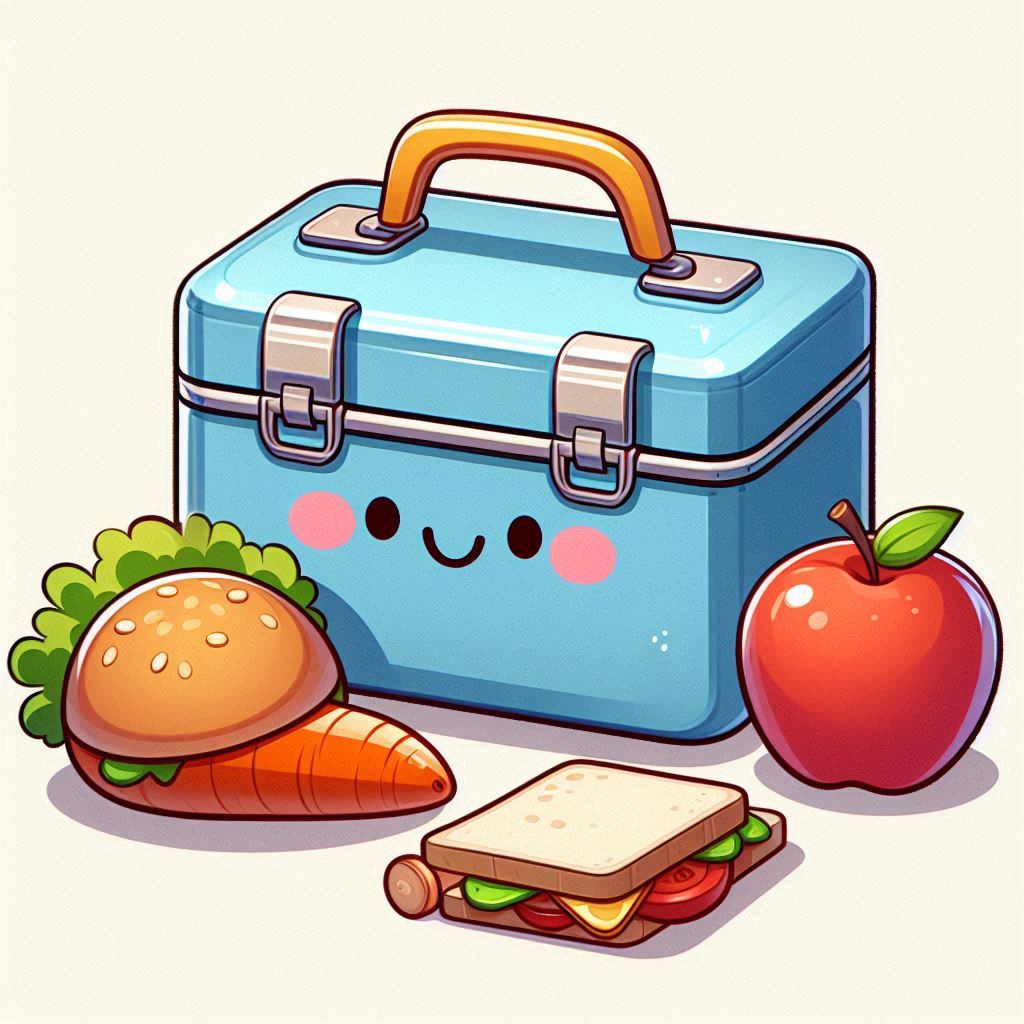 apple, background, blue, carrot, cartoon, cute, delicious, dinner, food, hamburger, happy, healthy, illustration, lunch, lunchbox, meal, sandwich, smiling, snack, white