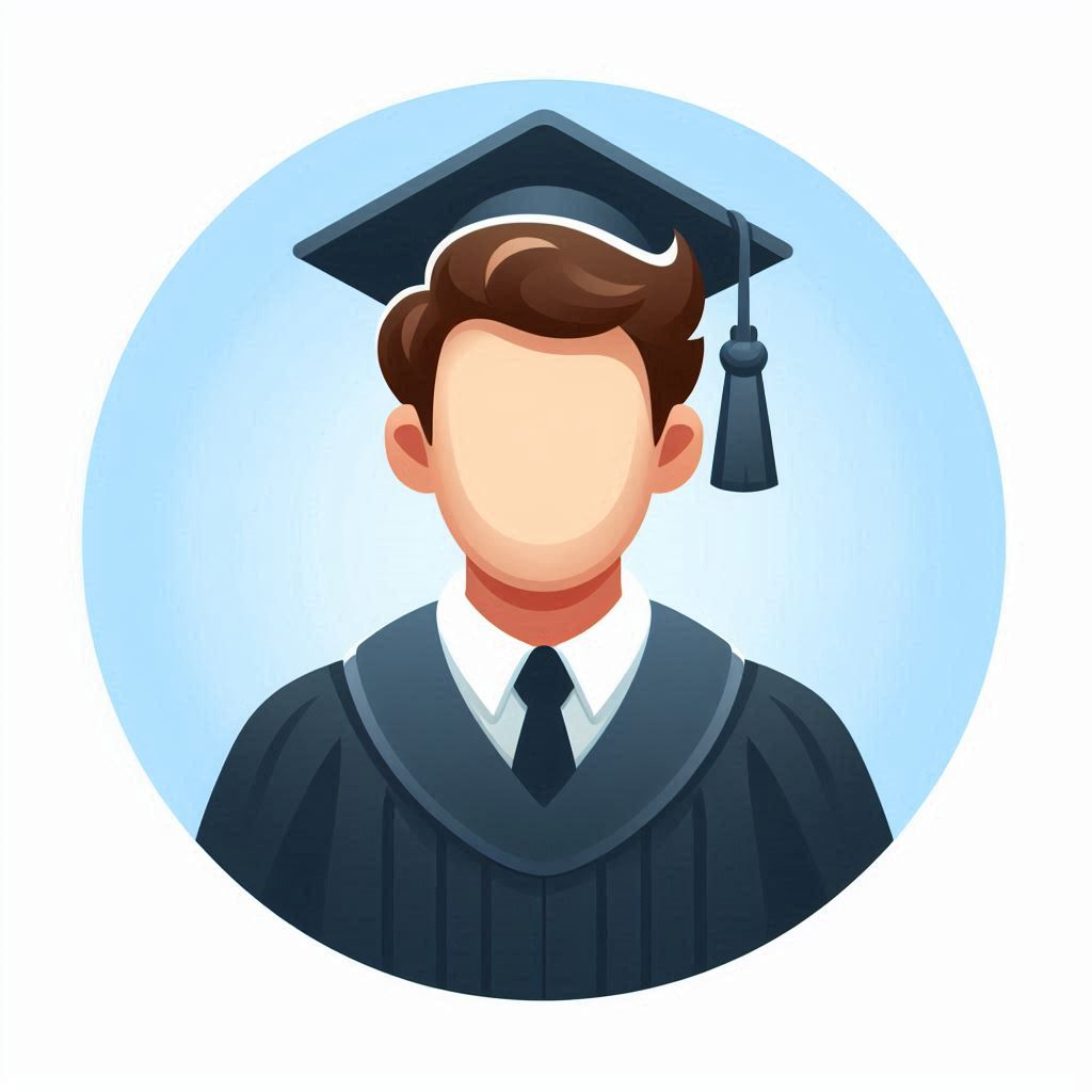 A cartoon illustration of a male student wearing a graduation cap and gown.