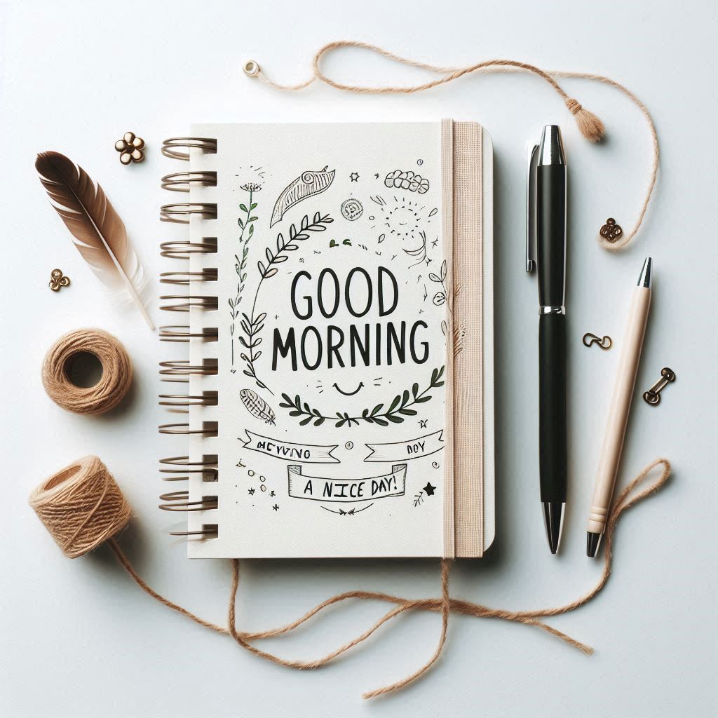 A decorated notebook rests with pens and natural accents, setting a positive tone for the day.
