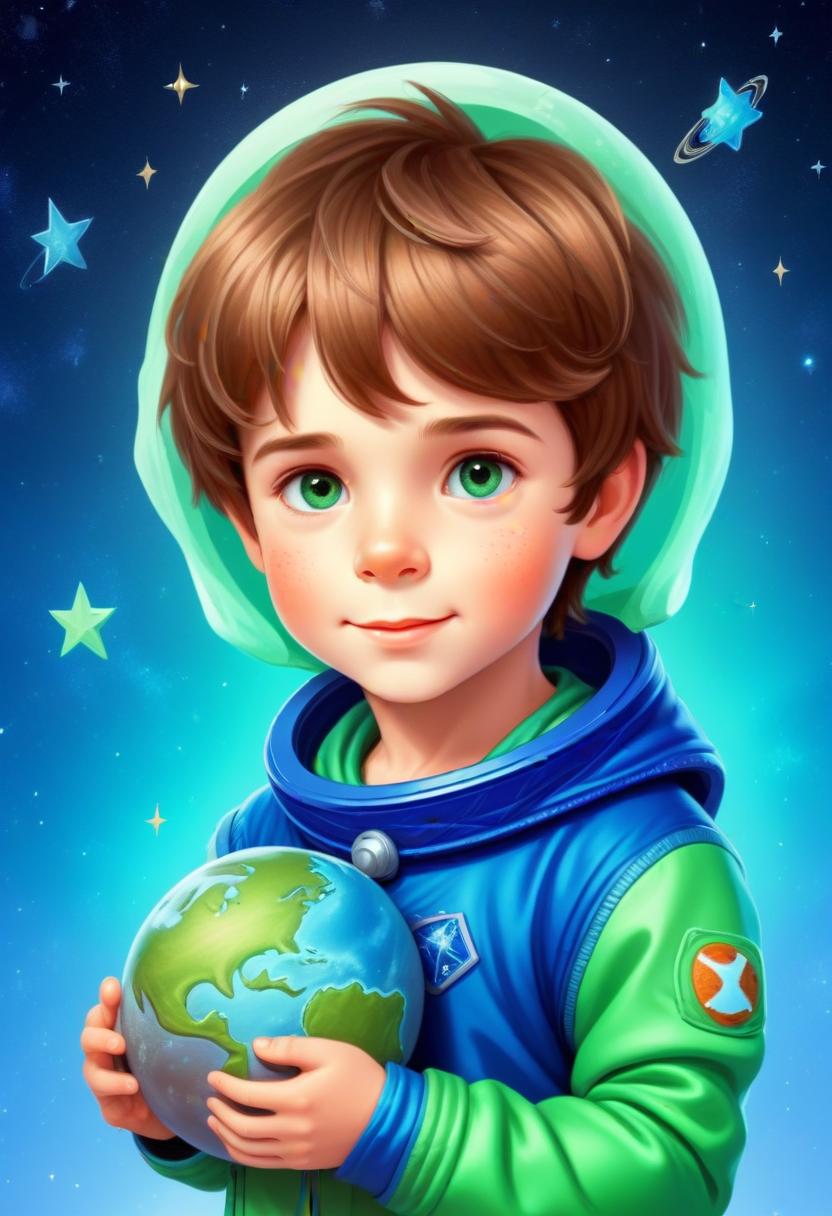 Earth, adventure, astronaut, blue, boy, childhood, cosmos, education, environment, exploration, future, globe, green, imagination, planetary, science, smiling, space, stars, universe