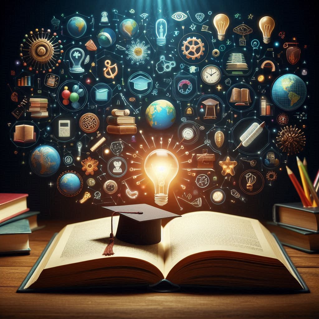 academia, achievement, book, bulb, cap, creativity, education, globe, graduation, ideas, innovation, inspiration, intellect, knowledge, learning, light, reading, study, symbols, wisdom