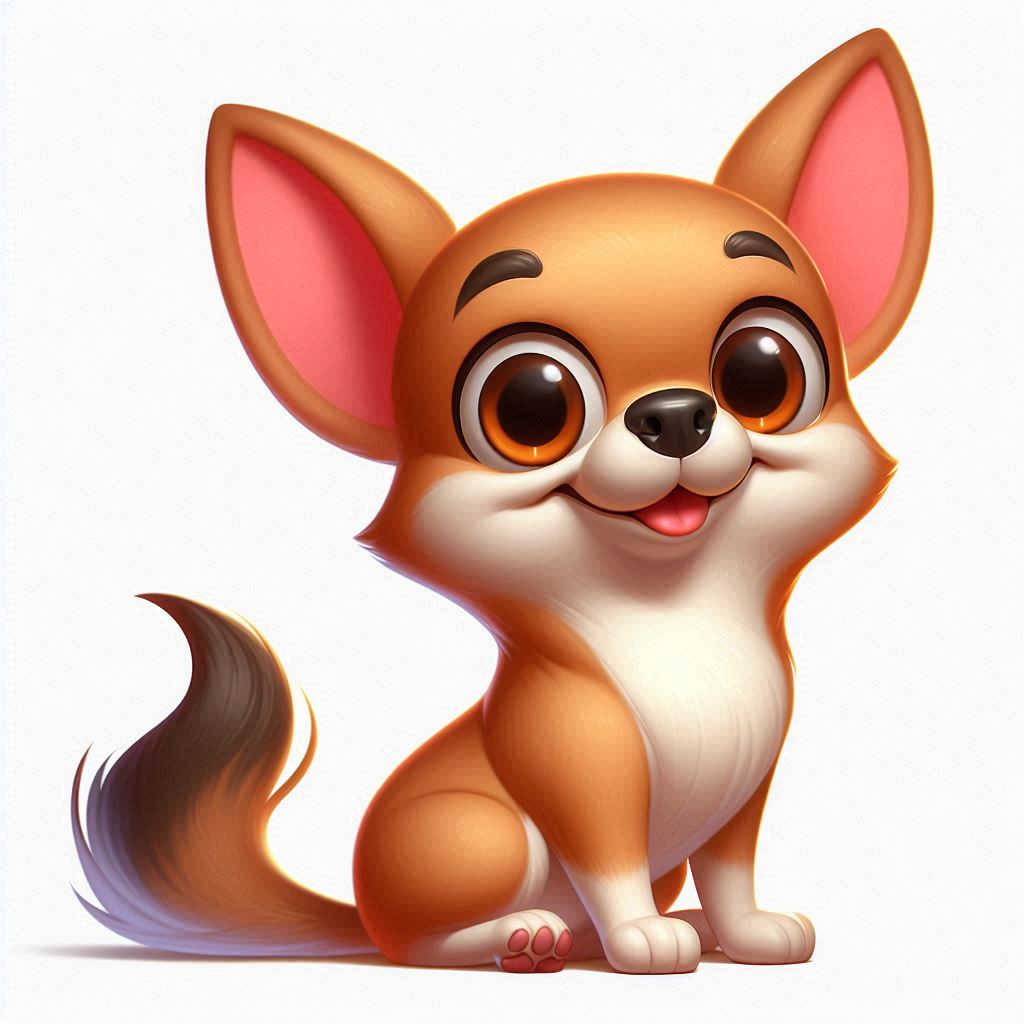 A playful cartoon Chihuahua sits happily, showcasing its large eyes and cheerful demeanor.