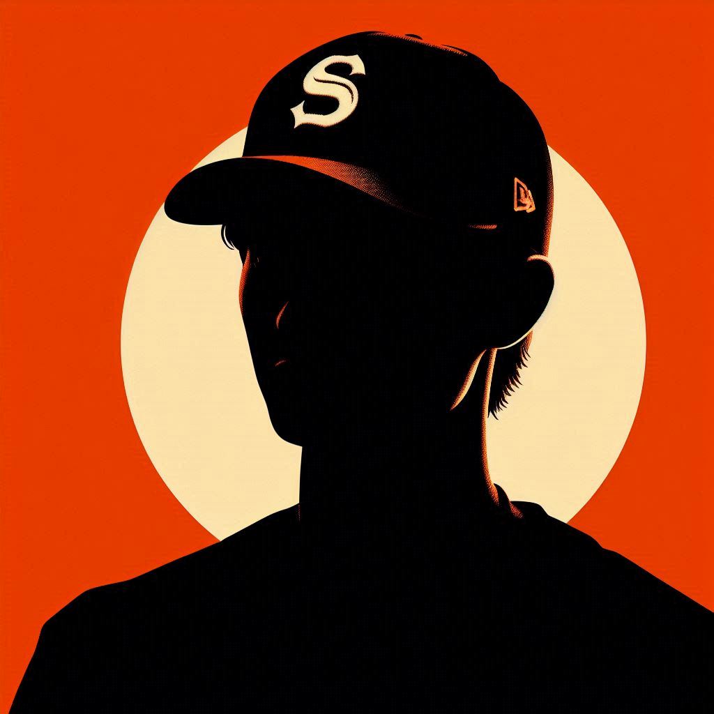 abstract, art, athlete, background, confidence, determination, dynamic, hat, male, minimalism, orange, portrait, profile, shadow, silhouette, sportswear, team, training, view, young
