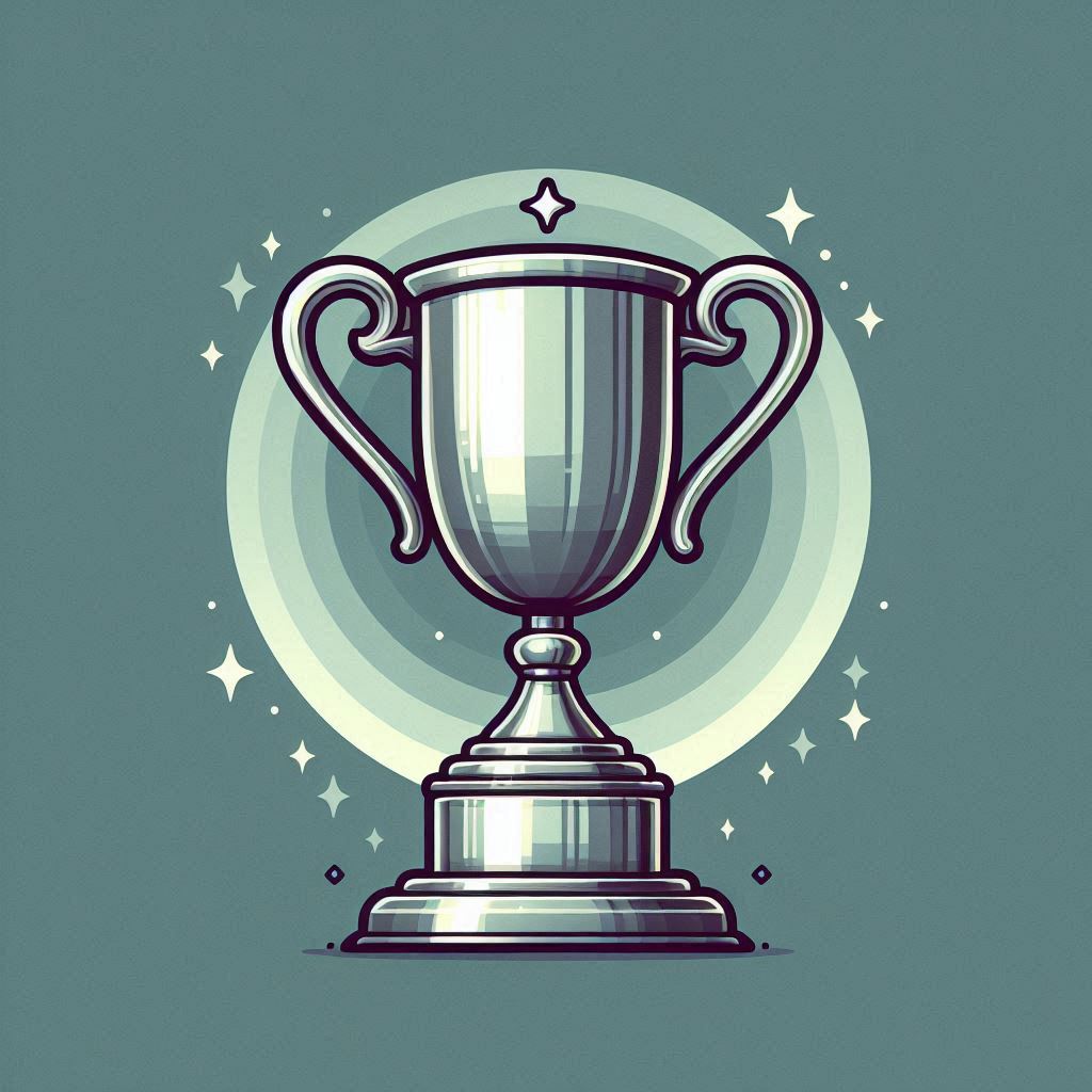 Shiny trophy with sparkles against a green background