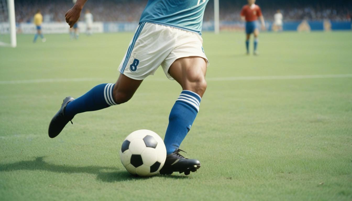 A soccer player skillfully maneuvers the ball on a grassy pitch during an intense game.