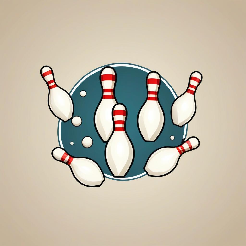 A set of bowling pins is shown toppling down against a colorful backdrop.