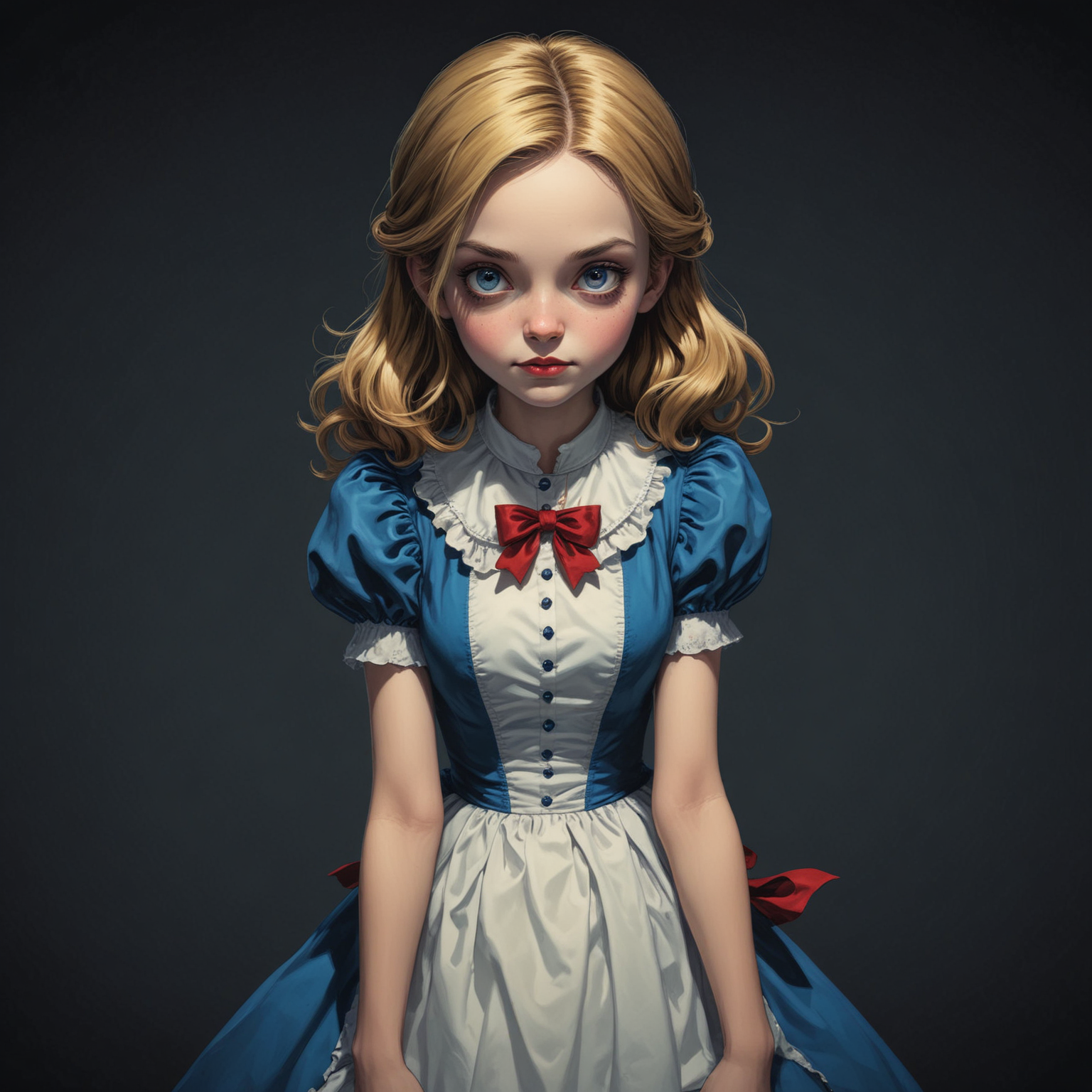 Enchanted doll in blue dress with white apron