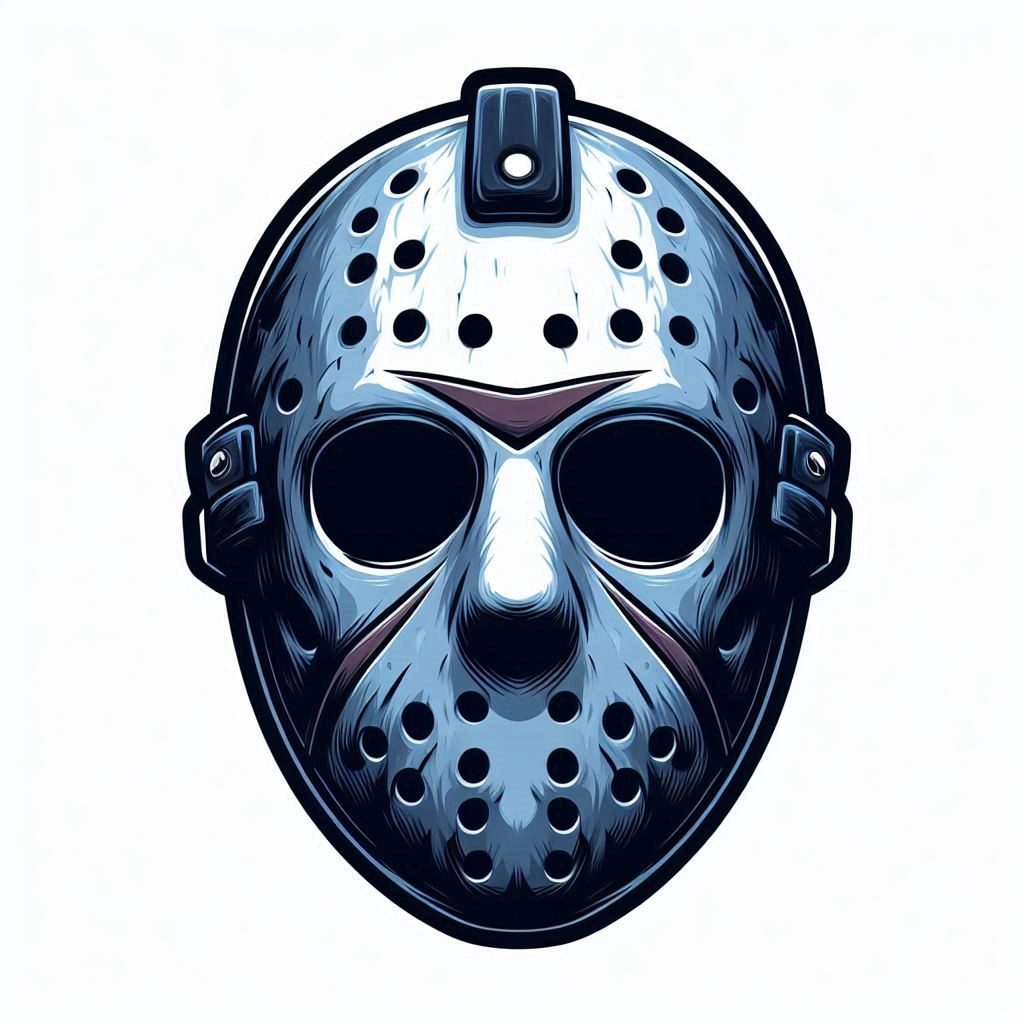 A detailed, artistic depiction of a hockey mask showcasing its unique design elements.