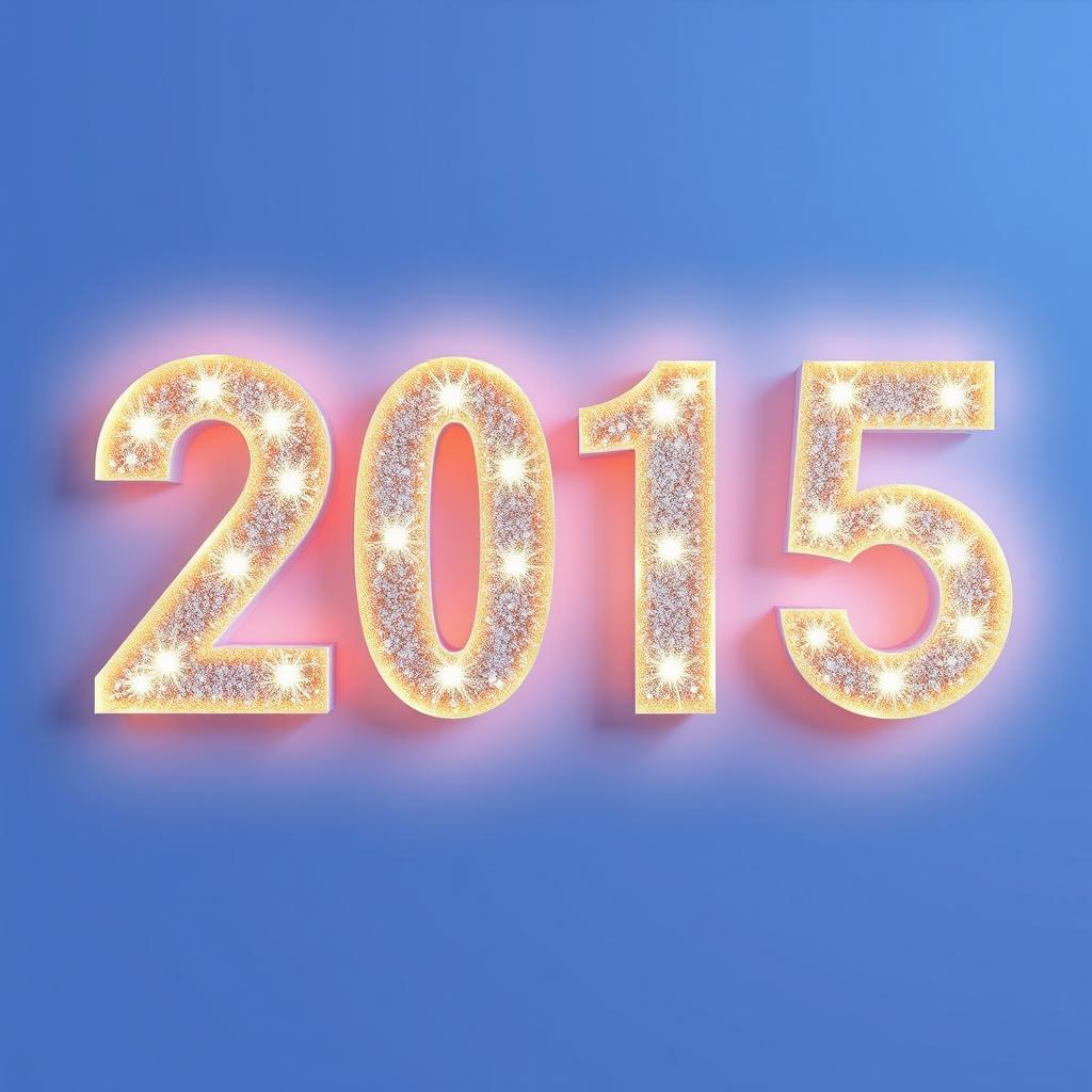 Bright, glittering numbers form the year 2015 on a vivid blue background.