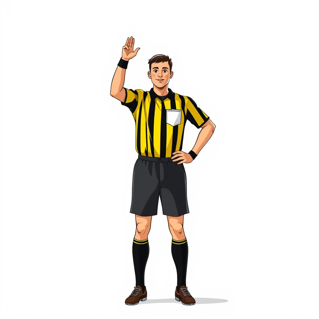 Referee signaling in yellow and black stripes