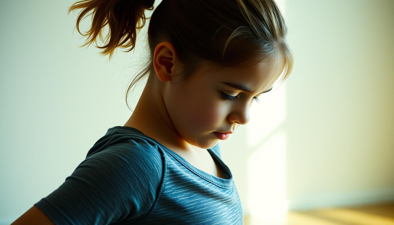 A young girl is focused and deep in thought, bathed in natural light, creating a serene and contemplative atmosphere.