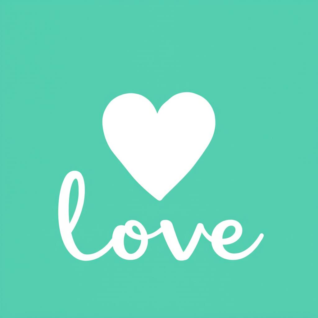 A heart symbol above the word love, illustrated on a teal background.