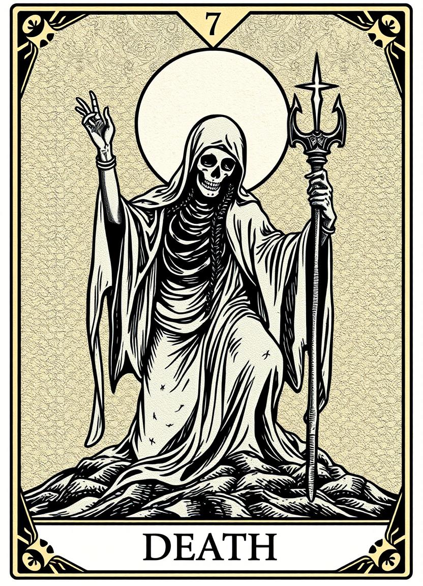Death tarot card illustration with skeleton and staff