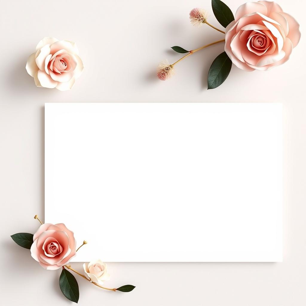arrangement, background, blank, card, cardstock, decoration, design, empty, floral, flowers, green, greeting, invitation, leaves, mockup, pink, roses, stationery, wedding, white
