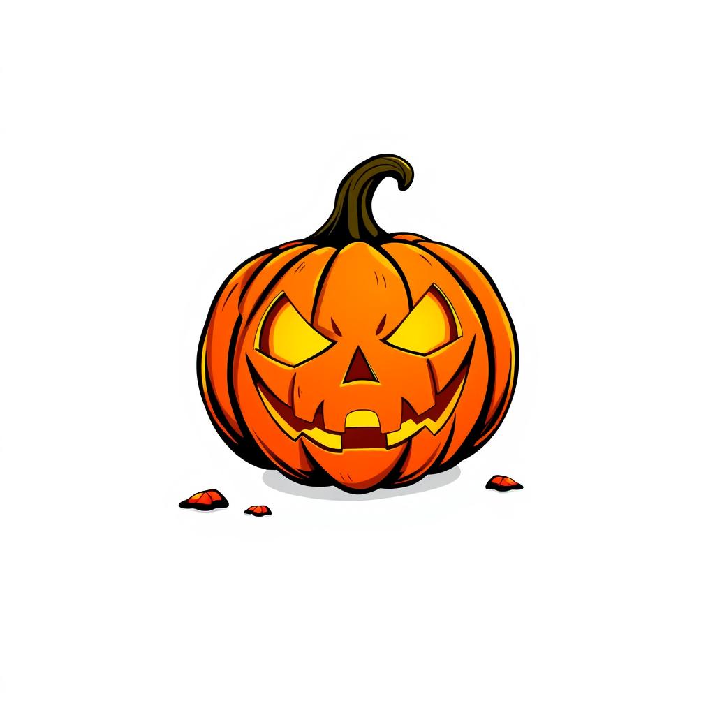 A carved pumpkin with glowing eyes and a wide grin sits on a white background.