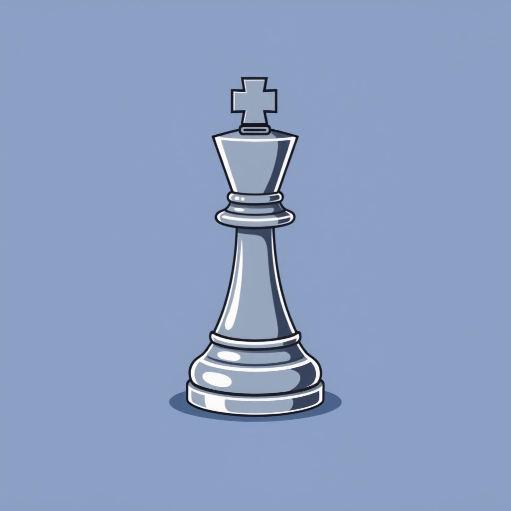 A cartoon illustration of a white chess king piece against a blue background.