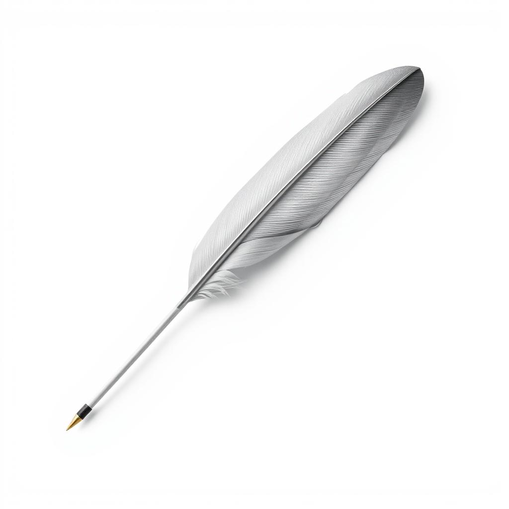 A white feather lies on a white background