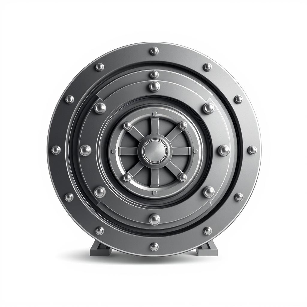 A closed vault door stands on a white background