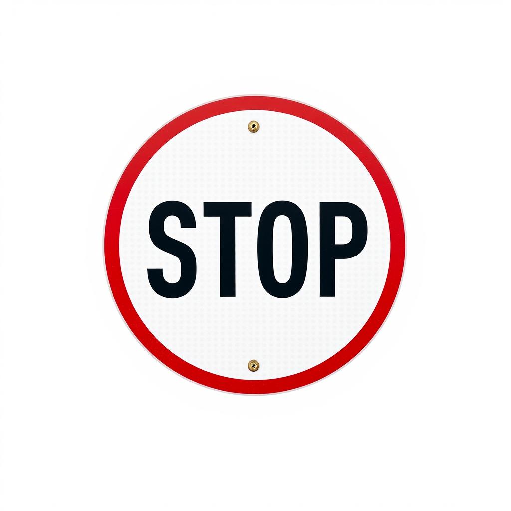 A circular sign with a red border and the word STOP in black letters.
