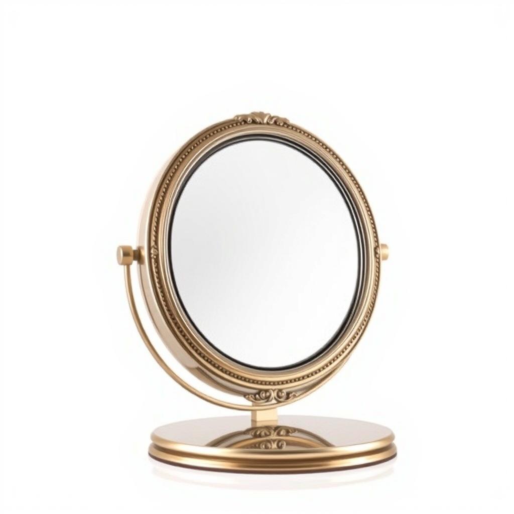 accessories, bathroom, beauty, classic, decor, design, detailed, elegant, gold, home, makeup, mirror, ornate, reflection, round, stand, style, tabletop, vanity, vintage