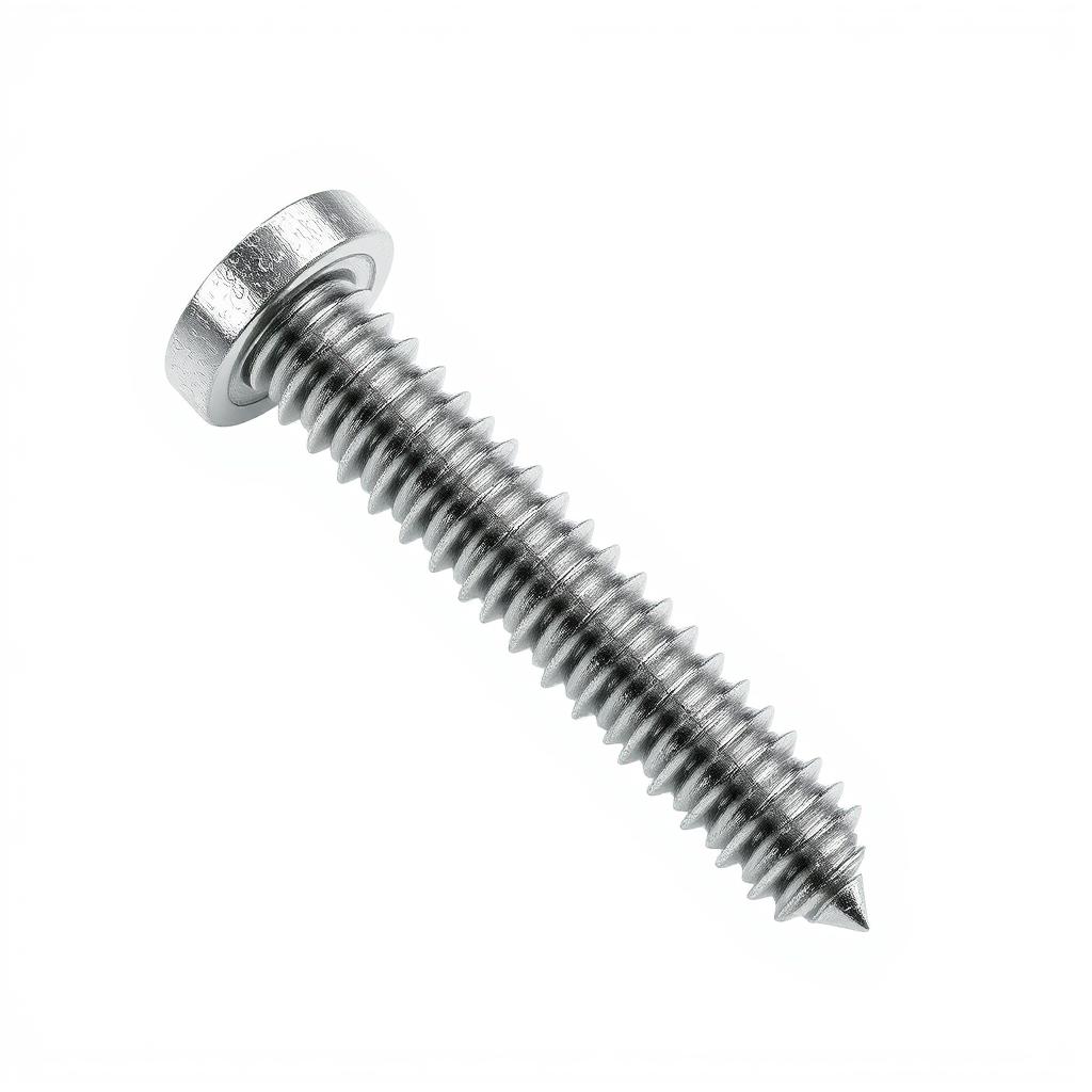 A silver screw sits on a white background