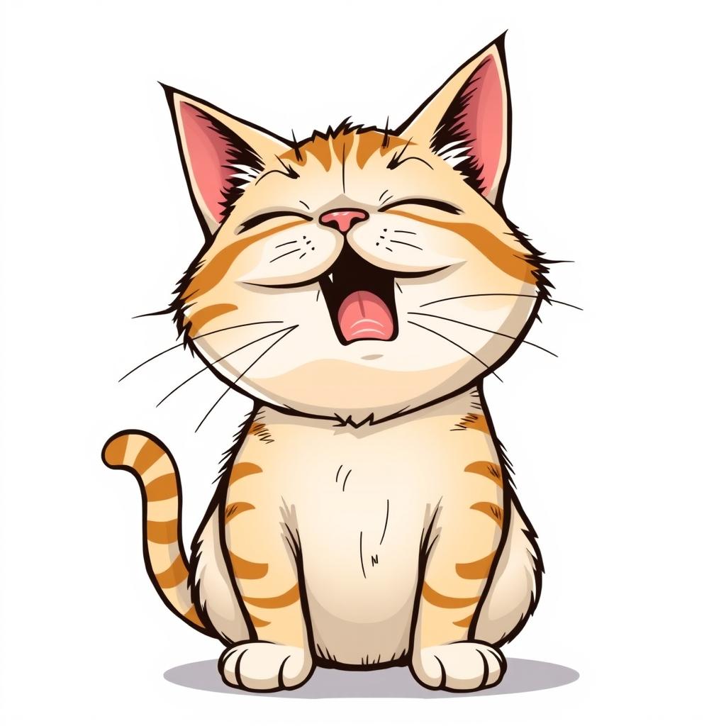 A cartoon cat is laughing out loud