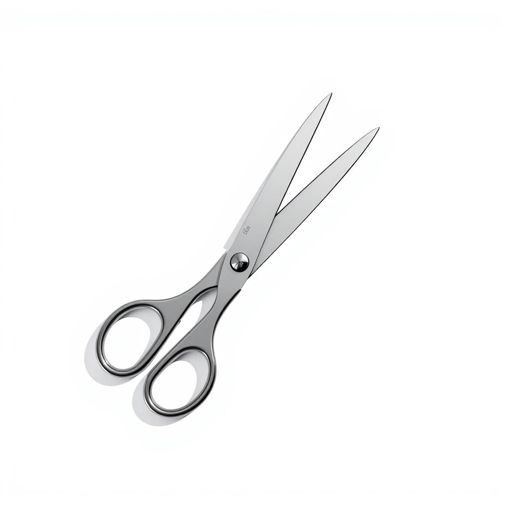 A pair of silver scissors are shown with a white background.
