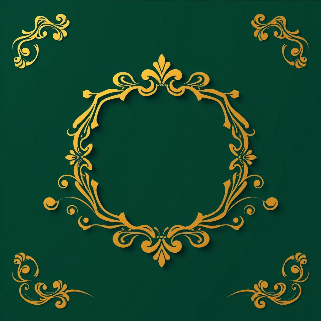 A circular, ornate gold frame with floral patterns against a solid green background.