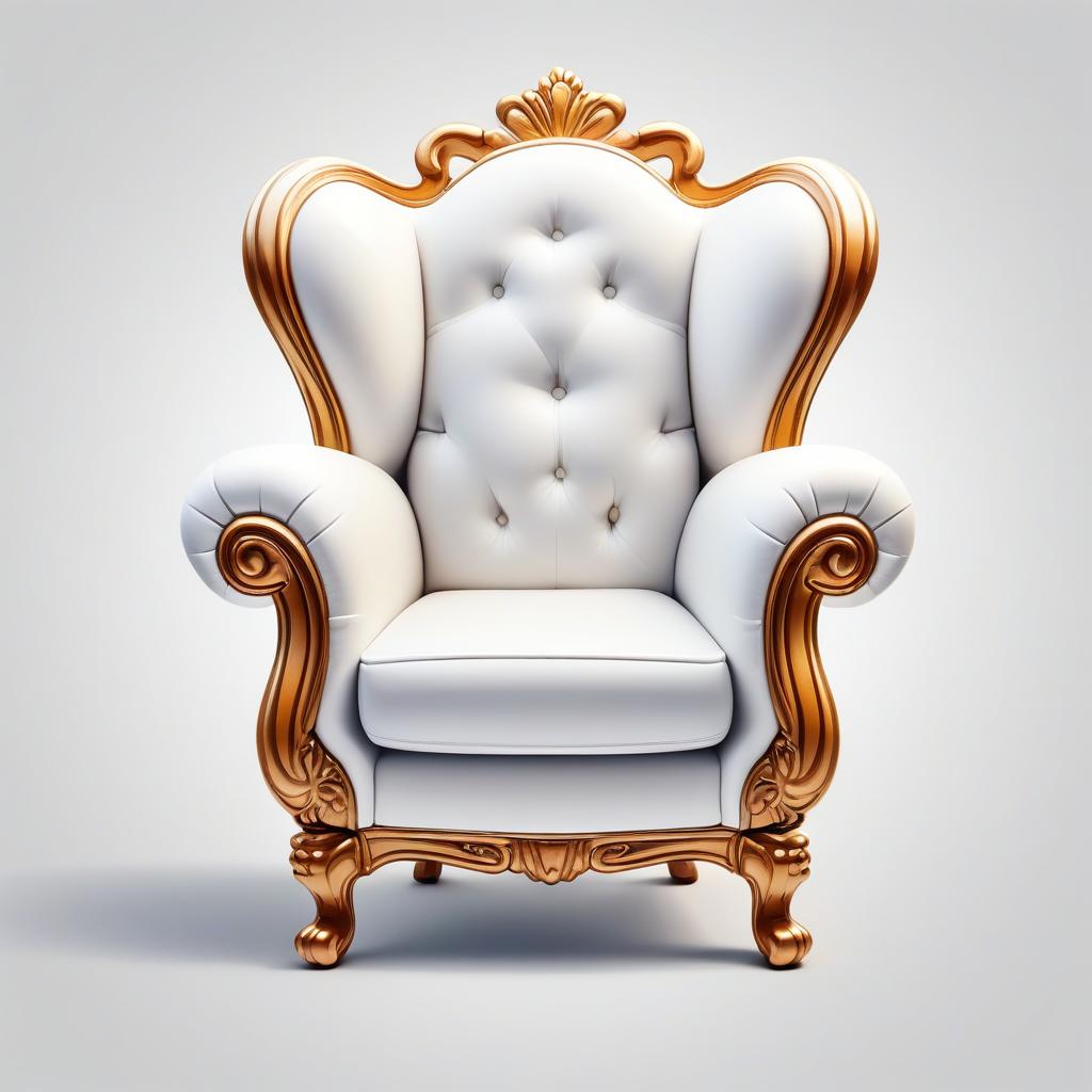 White armchair with gold accents on white background
