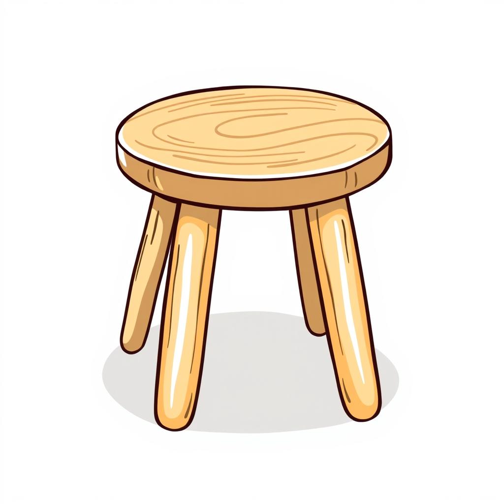 A hand-drawn cartoon illustration of a light brown wooden stool with four legs.