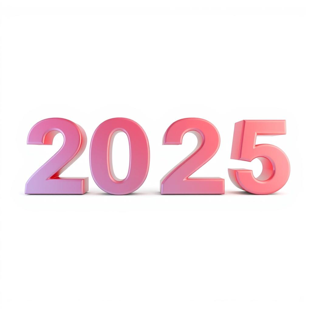 A 3D rendering of the year 2025 in pink with a gradient effect. The numbers are on a white background.