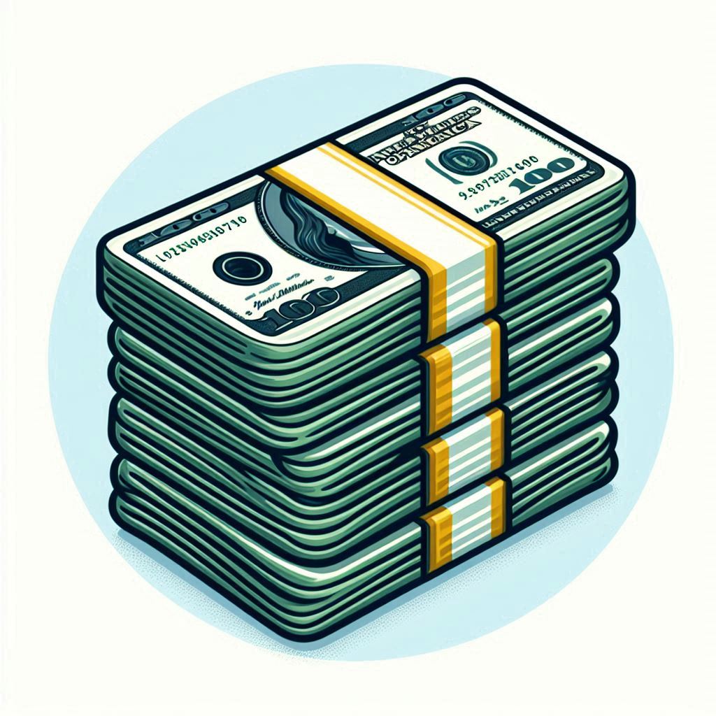 A stack of hundred dollar bills sits on a table